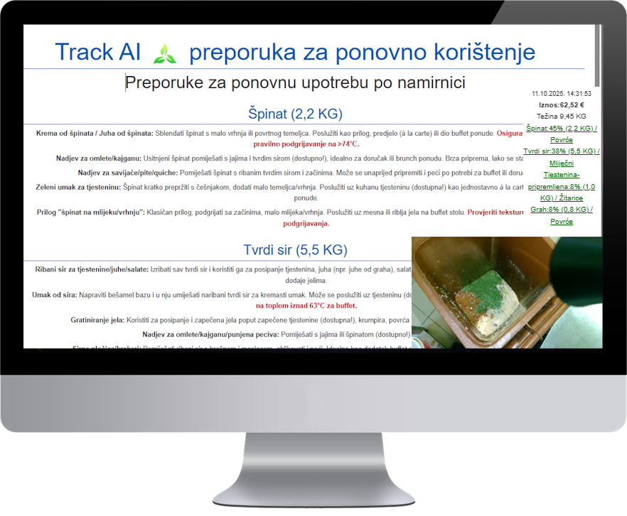 Sustav predlaže načine ponovne uporabe i omogućava glavnom kuharu da educira tim s rezultatima i prati realizaciju.